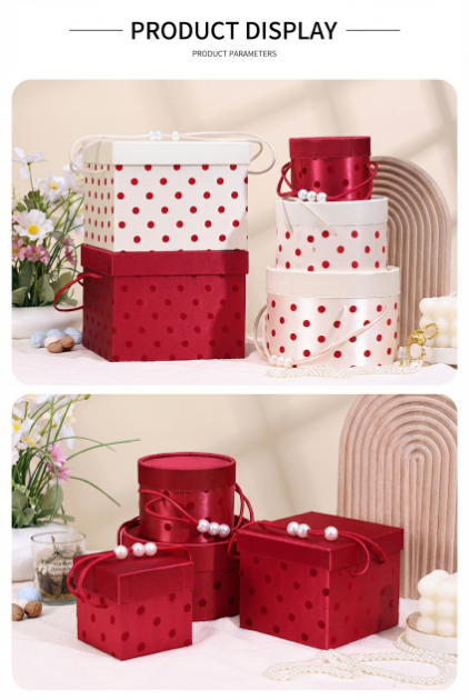 Gift box size | Square box:10*10*10CM,14*14*12CM,21*21*16CM Round box:12*9.3CM,16.5*9.5CM,19.5*14.5CM |