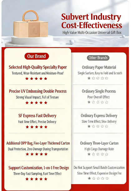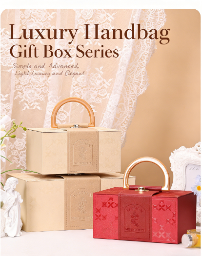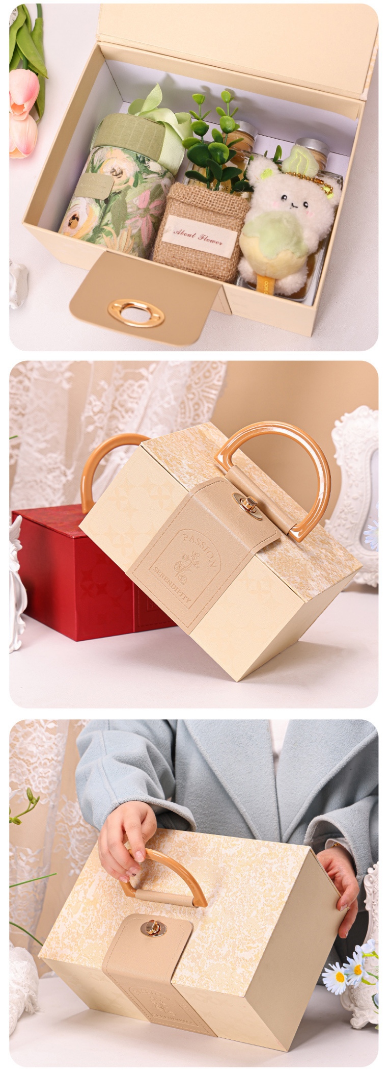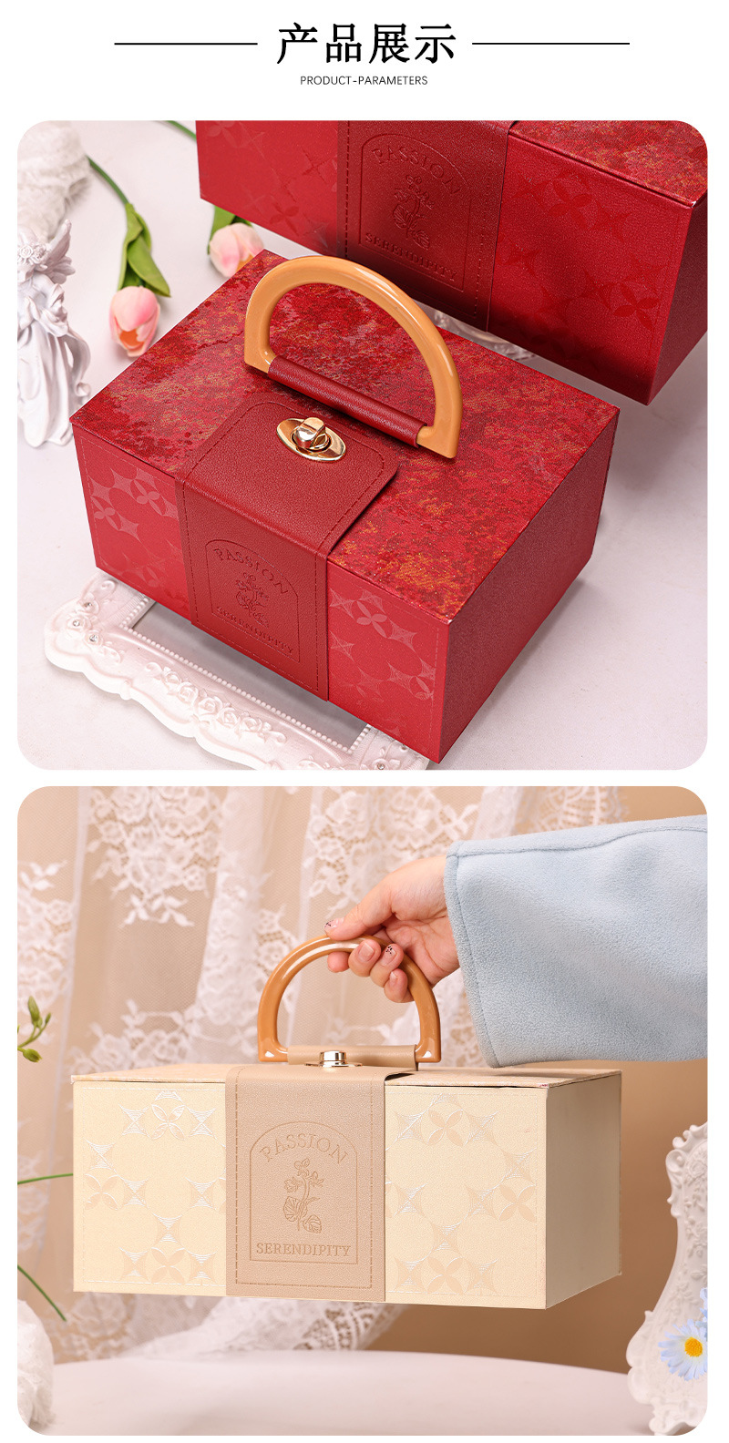 The hand-held gift box is simple and elegant, with a touch of light luxury and refinement Double-process embossed UV The metal snap fastener is firm and durable