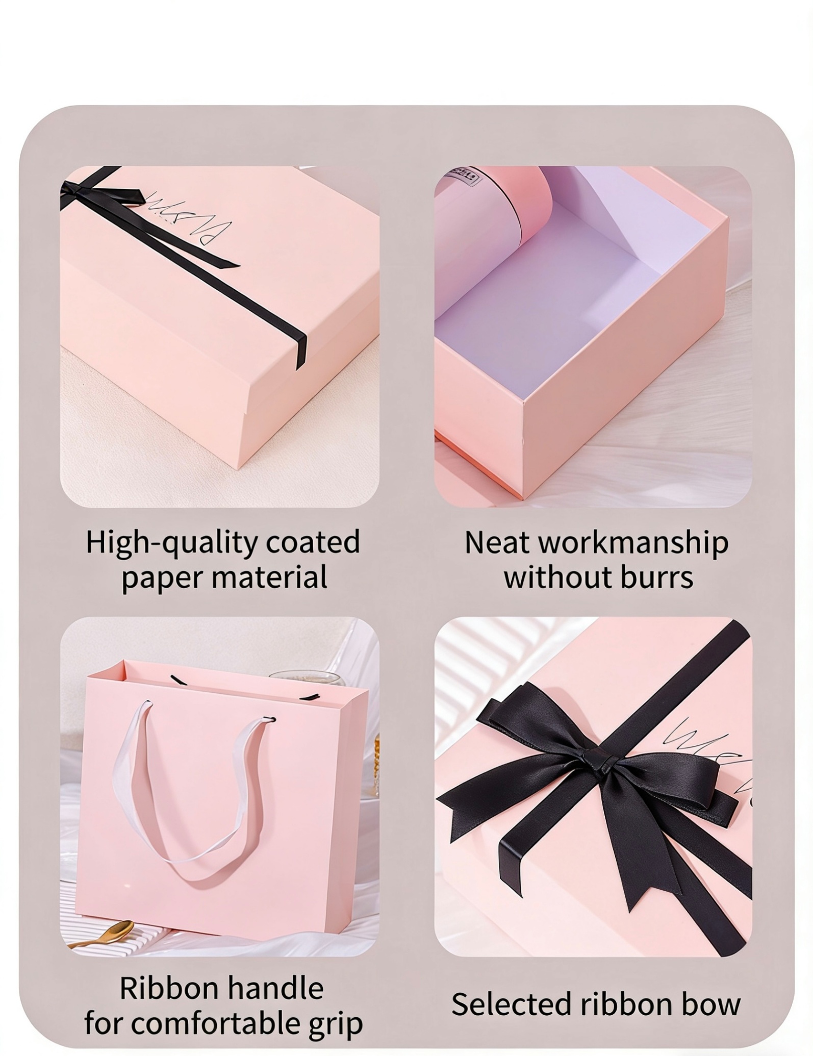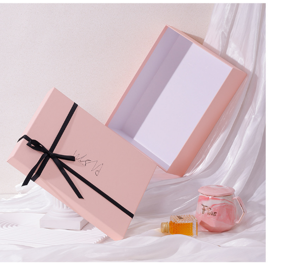 Various sizes Thickened cardboard Sky-and-earth cover box type Thickened copperplate paper material The workmanship is smooth without any rough edges The ribbon handle does not chafe the hand Premium ribbon bowknots